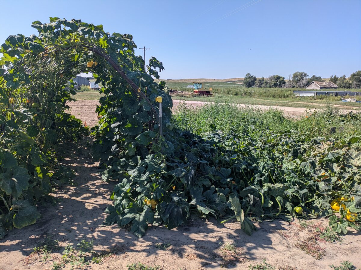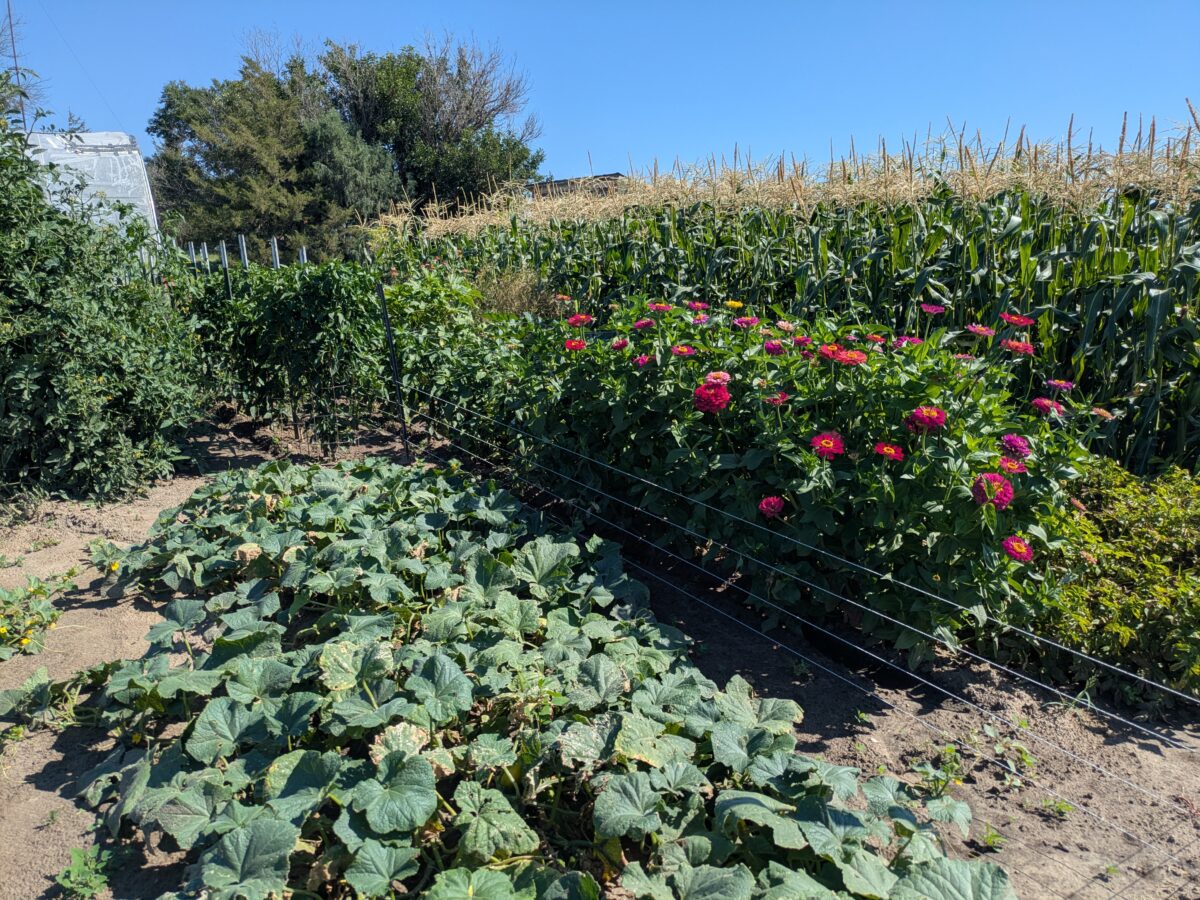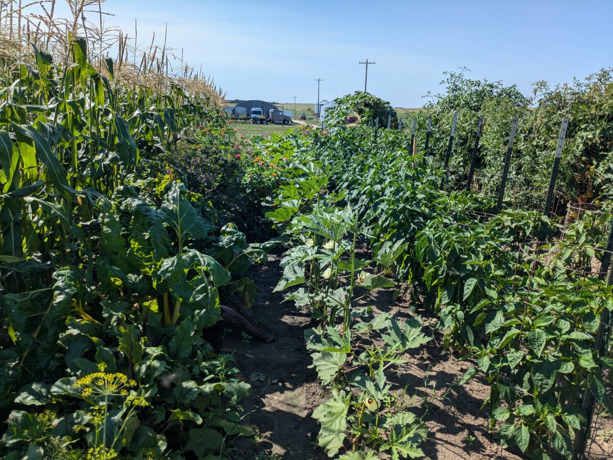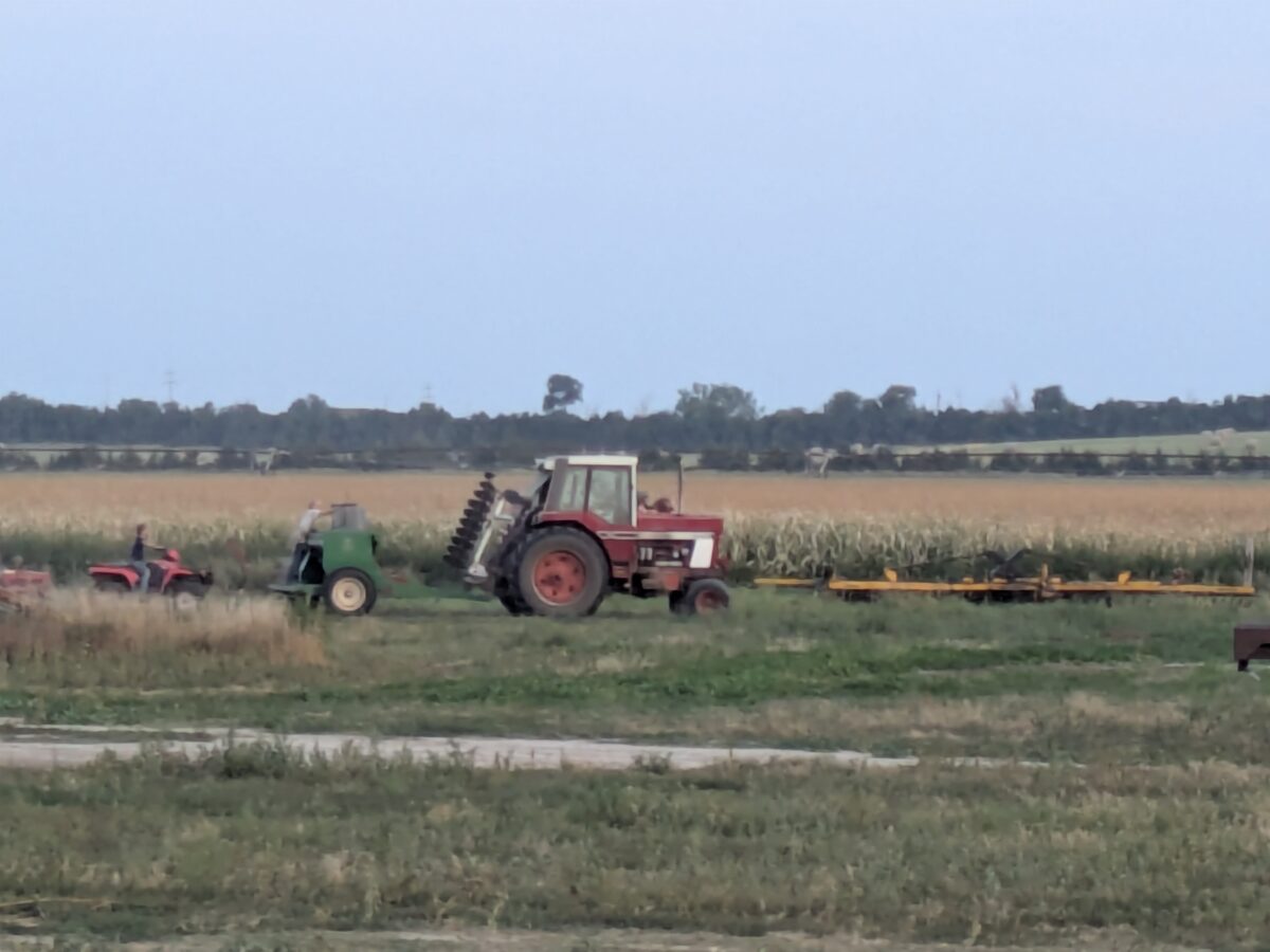 Cutting vegetables and finishing the meal I kept a watch out for them all, worried they’d be in and starving before I got the meal finished. No sign of them. Out to the garden to get it ready for the night and pick whatever was ripe and easy to serve alongside the meal, I heard the tractor in the distance. They were finally headed in.
