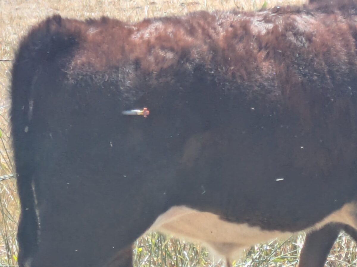 Immediately after shooting the calf I was impressed with how long the dart was hanging on there. All the medicine would get into the calf. Yay! Then it still didn’t fall out. Then I realized I could only see the very end of the dart. I had shot the calf! For real. I had shot an 8 inch long at least a quarter inch wide dart deep into the calf!