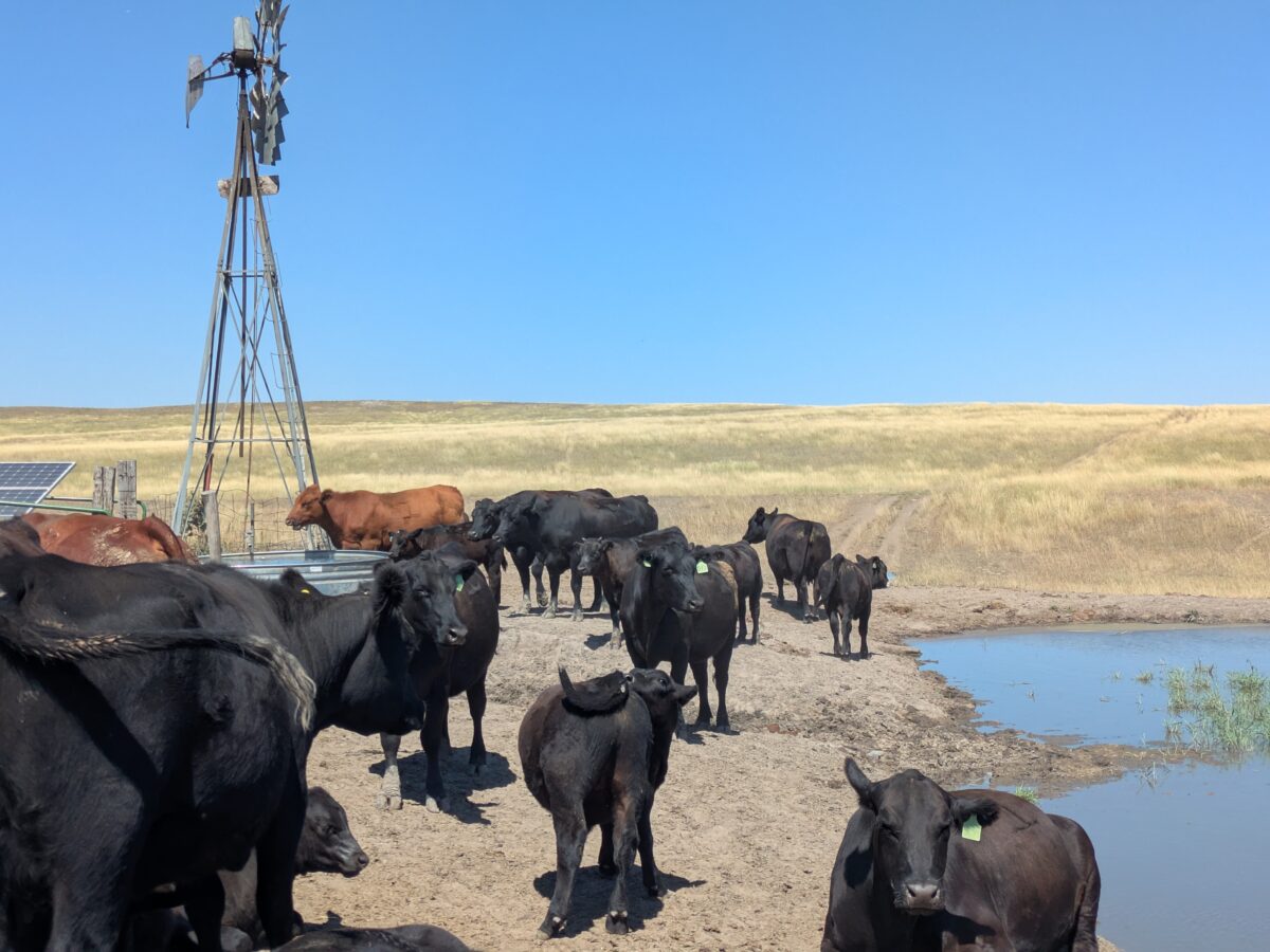 I spent the meantime stalking the calf around the tank. The cow herd is quiet. I squeezed my way between cows who saw no reason to move. Walked by my napping bull quite a few times, he saw no reason to get up. All the other calves hung out or came to check me out. I could have caught any of them. Except the one I was after. I got a few chances, but missed my loop. I am no cowgirl. A horse might have made it easier, unlikely though.