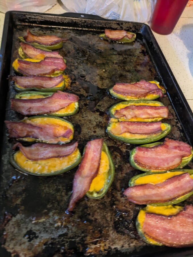 No pictures of the poppers, they were pretty gross looking, brown, shriveled, and lacking in bacon.