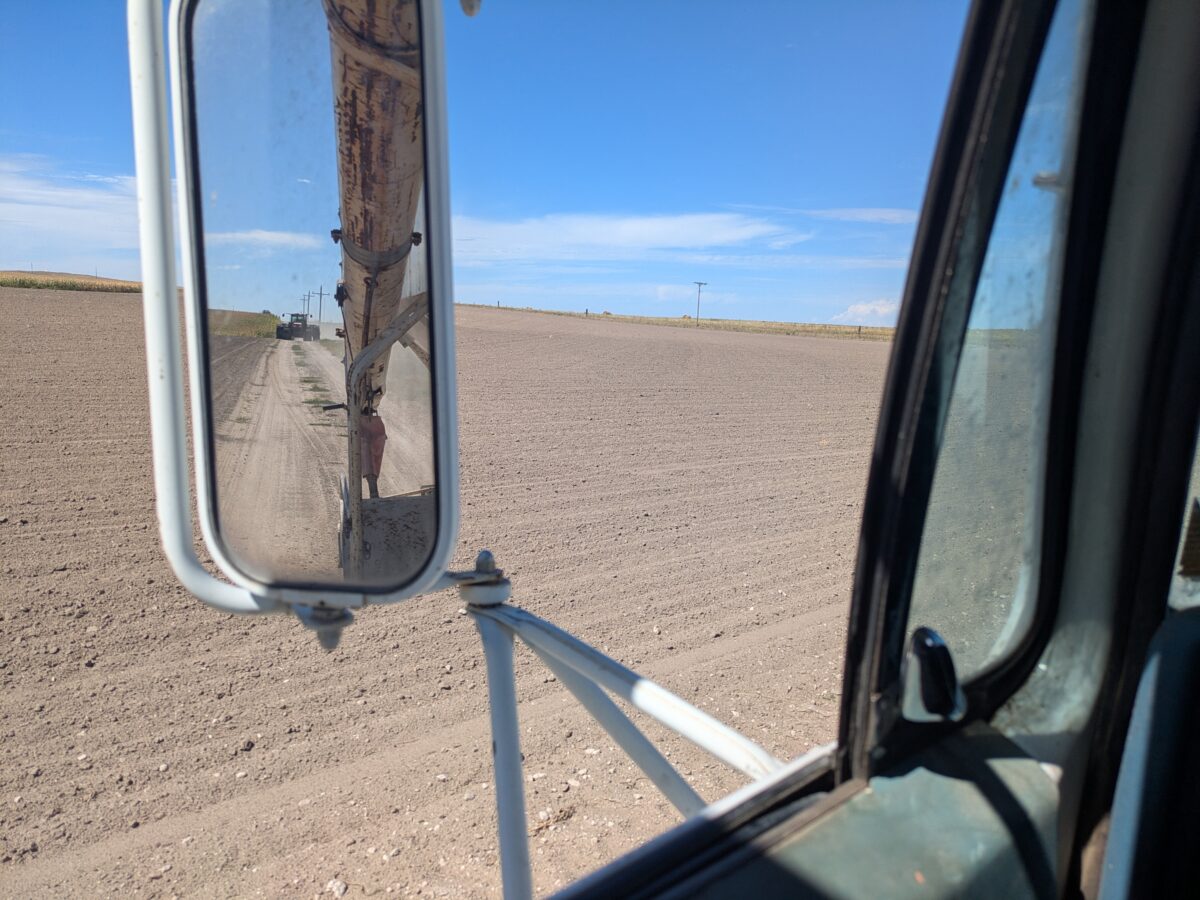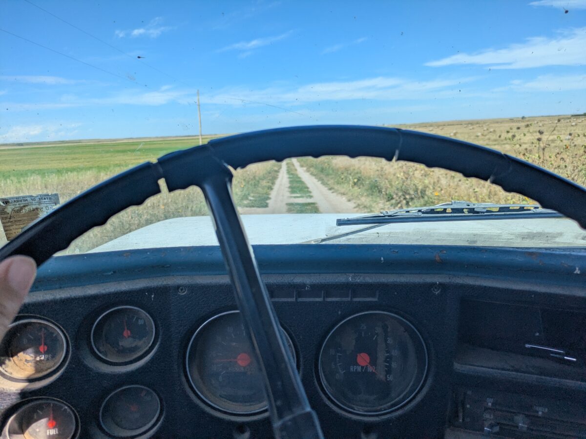 The seed truck is older than I am. It sits most of the year while mice crawl through it and make a filthy stinking mess of the whole thing. I had complained about it enough that they had cleaned the cab out pretty good while getting everything ready to plant. Luckily. I have never had to drive this before and would not have been willing in its usual stinky state. As it was though, as long as I didn’t look at the floor, it was just a nice old truck. Sitting in the driveway as we were about to head off I got my first experience with its clutch. It involved lots of rolling backwards as I struggled to find that sweet spot where clutch and gas meet to make it go forward smoothly. It was much pickier than the semis I had gotten used to. Finally finding it, we proceeded onward.