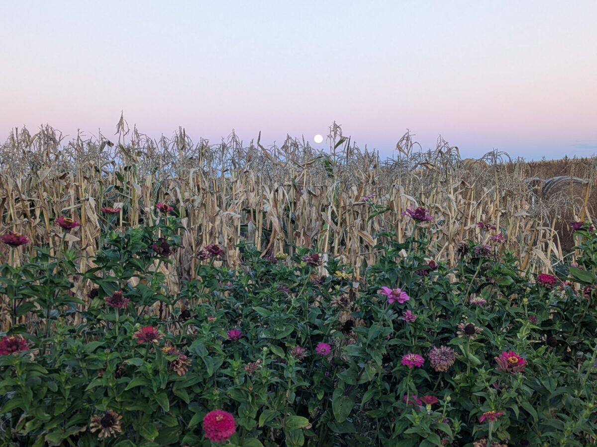It was nearly dark when we reached my husband waiting in his tractor at the field. He had been able to get more disking done than anticipated while we fixed cow problems. All squeezed warmly into the cab of the pickup we compared weather forecasts on the drive home. Now they were predicting frost. Not earlier when it would have been easier to do something about it. Once home instead of running to work in the garden we ate a quick late supper and went to bed. The garden would do whatever the garden did.