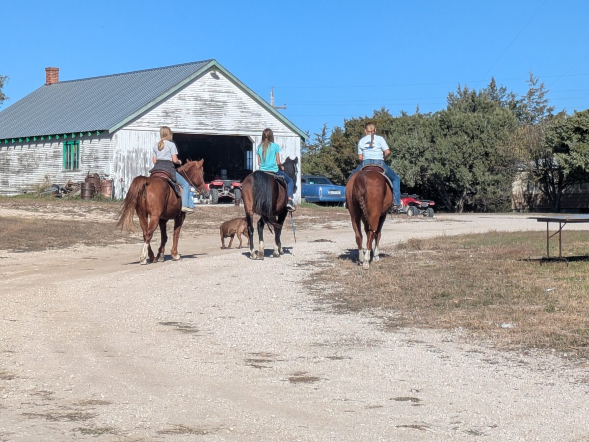 Next time I heard from her they were at the other far corner of the property and thinking about going farther. Or coming back. Who knows. Teenagers don’t exactly text clearly. But they made it that far on a cool windy morning. Hopefully the horses will be tired enough to walk home again. Walk being the important part of that. If they were going to act up, hopefully they already would have. I am loving this. We need to have friends over to ride way more often!