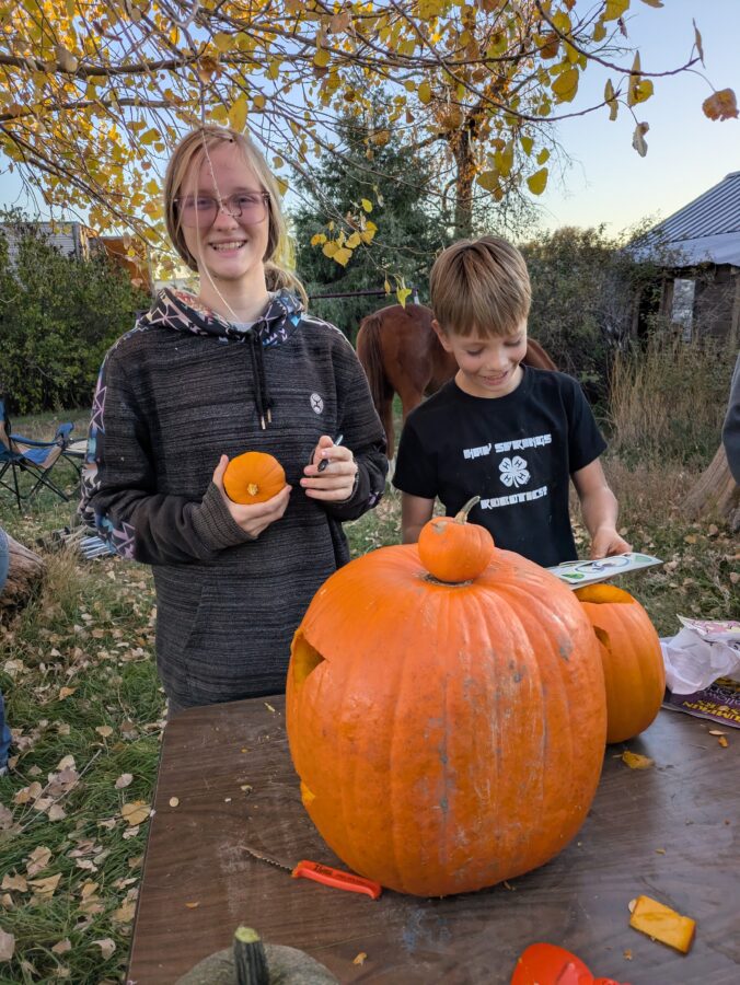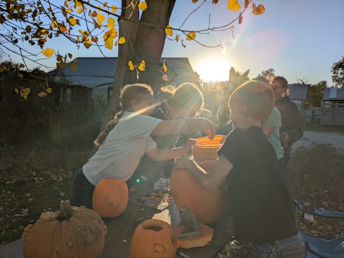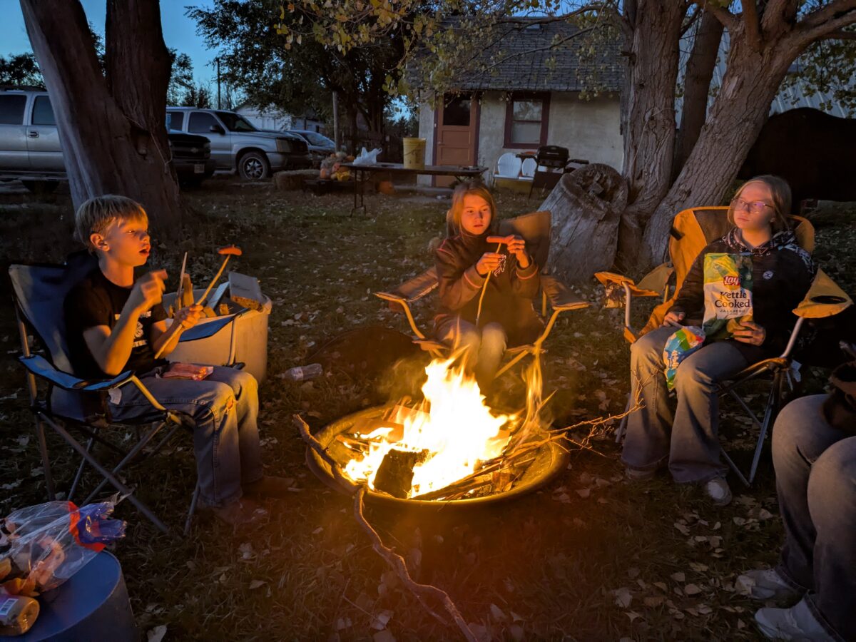 We carved pumpkins then roasted marshmallows and even a couple hot dogs for supper over a fire.