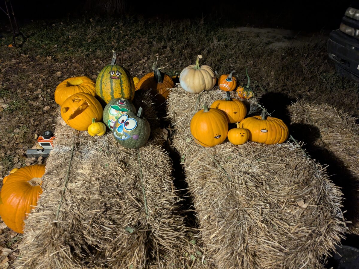 The kids didn’t play outside, in the dark, on the hay bales. It was too cold. The wimps.
