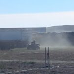 My husband showed up. He parked his suburban at an angle to my pickup so we would have a spot to corner the calf if we got that chance. Then we went hunting together. The calf was by the tank. We split up to try to catch him between the tank and the windmill pond. If we could hold him up there for a minute I might get a shot.