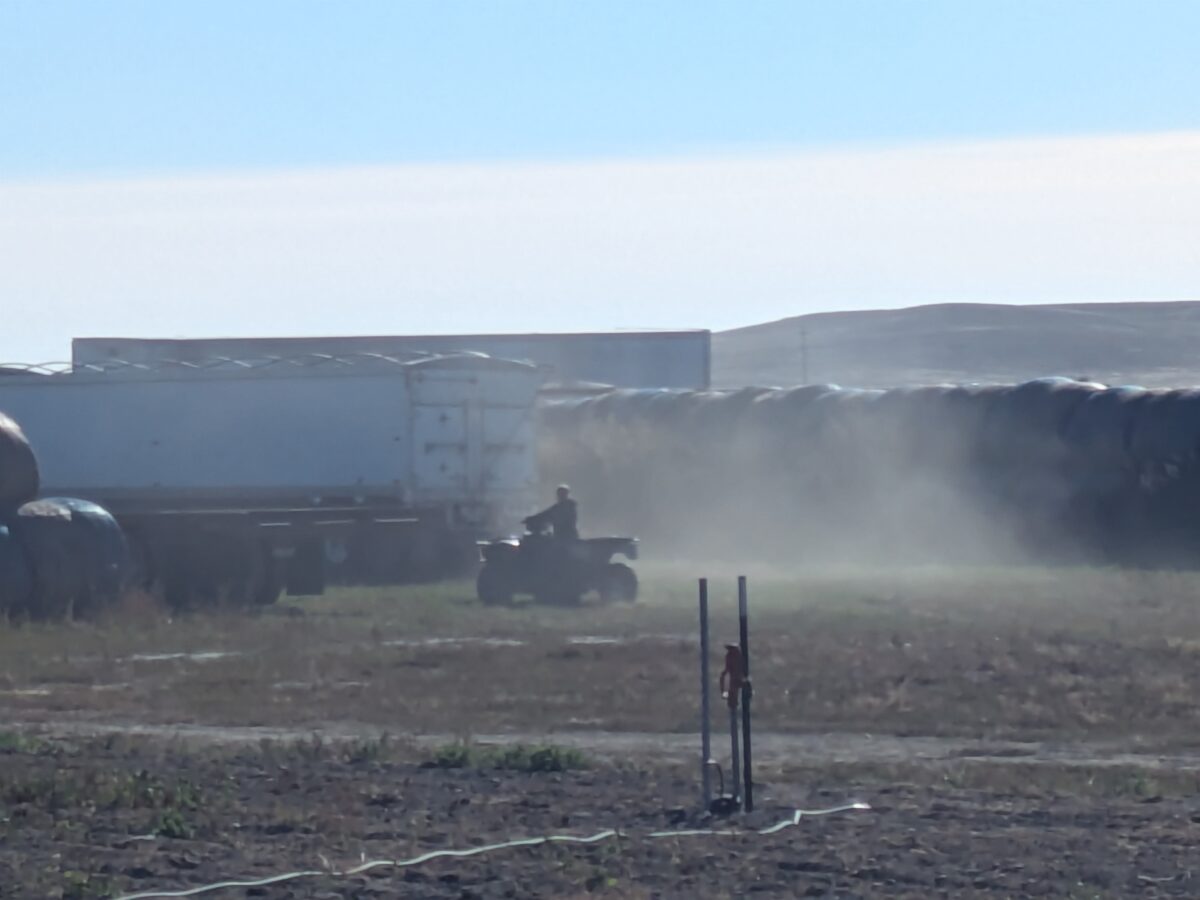 Chugging along at almost top gear, 4th gear but low range, we chatted away. With all the weight of the full load of seed on going up hill required going down a gear. Until we reached THE hill. It is a steep down hill, from this direction. Then the road we need to take Ts off to the north going straight back up. the combination of having to stop to make the turn and then the steep hill climb makes life interesting with any sort of a load on. I’ve gotten stuck here before. In much simpler vehicles. A pickup and trailer with a load of calves going to pasture stalled out at the base of THE hill once. It required backing the dead pickup downhill and around the corner in order to try a few more times before giving up. There’s also very limited to no phone reception there. No calling for help. I had to wait until my husband, in the semi with the mama cows realized we weren’t behind him any more.
