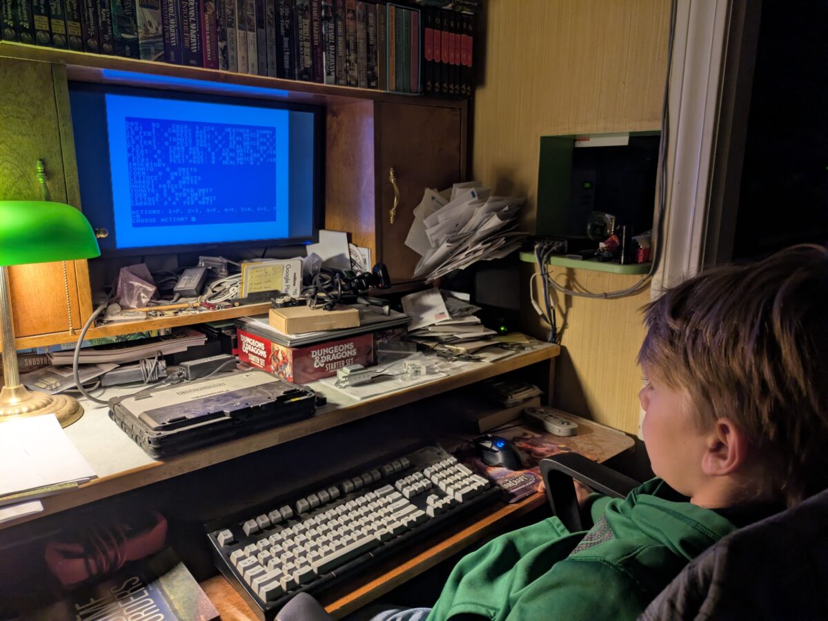 My son wasn’t quite as into that art stuff. He came over and took over the game I had started. He’s not overly fond of reading, so there were some doubts about his interest in the screen full of text. He caught on right away and went right to producing crops.