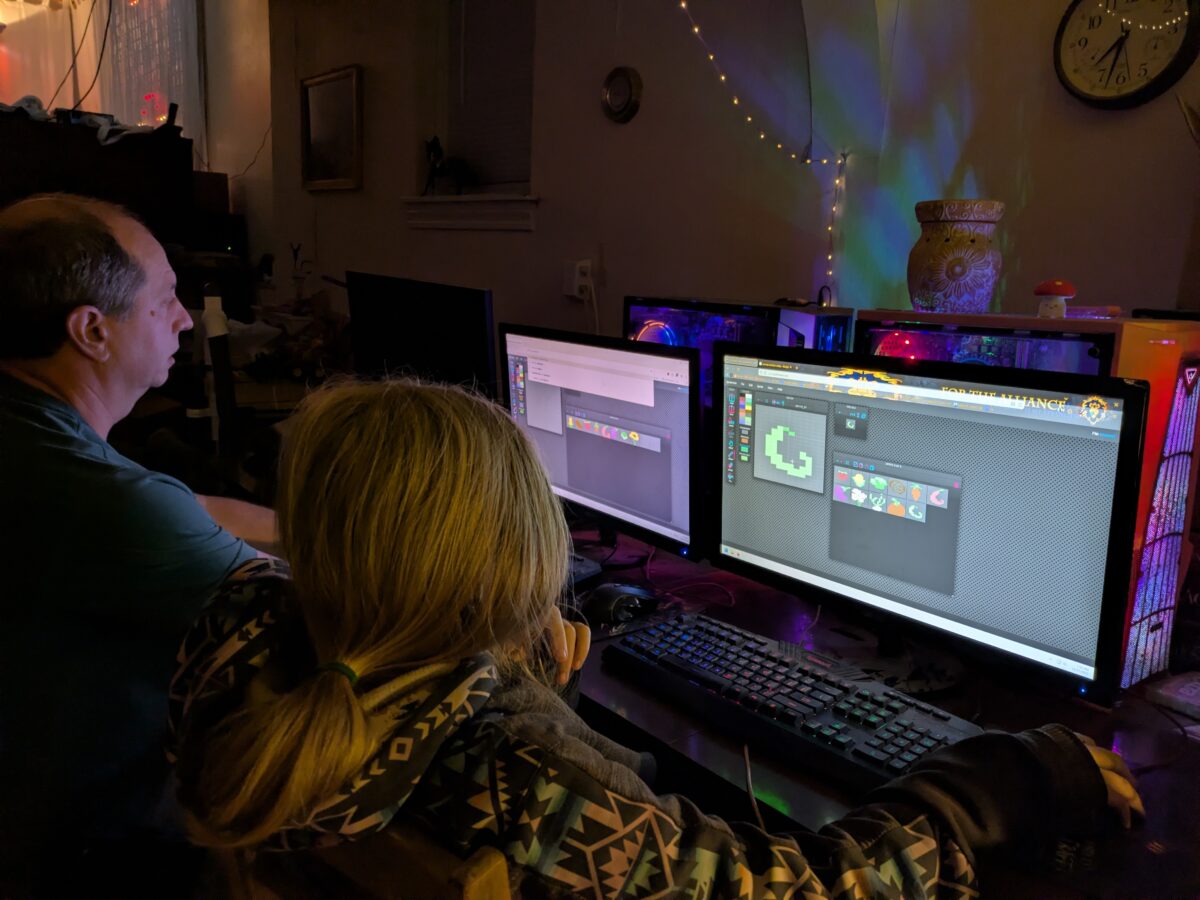 While I played on his computer he sat the kids down on their computers. They had screen with colors and boxes. He explained to them how to draw using pixels.