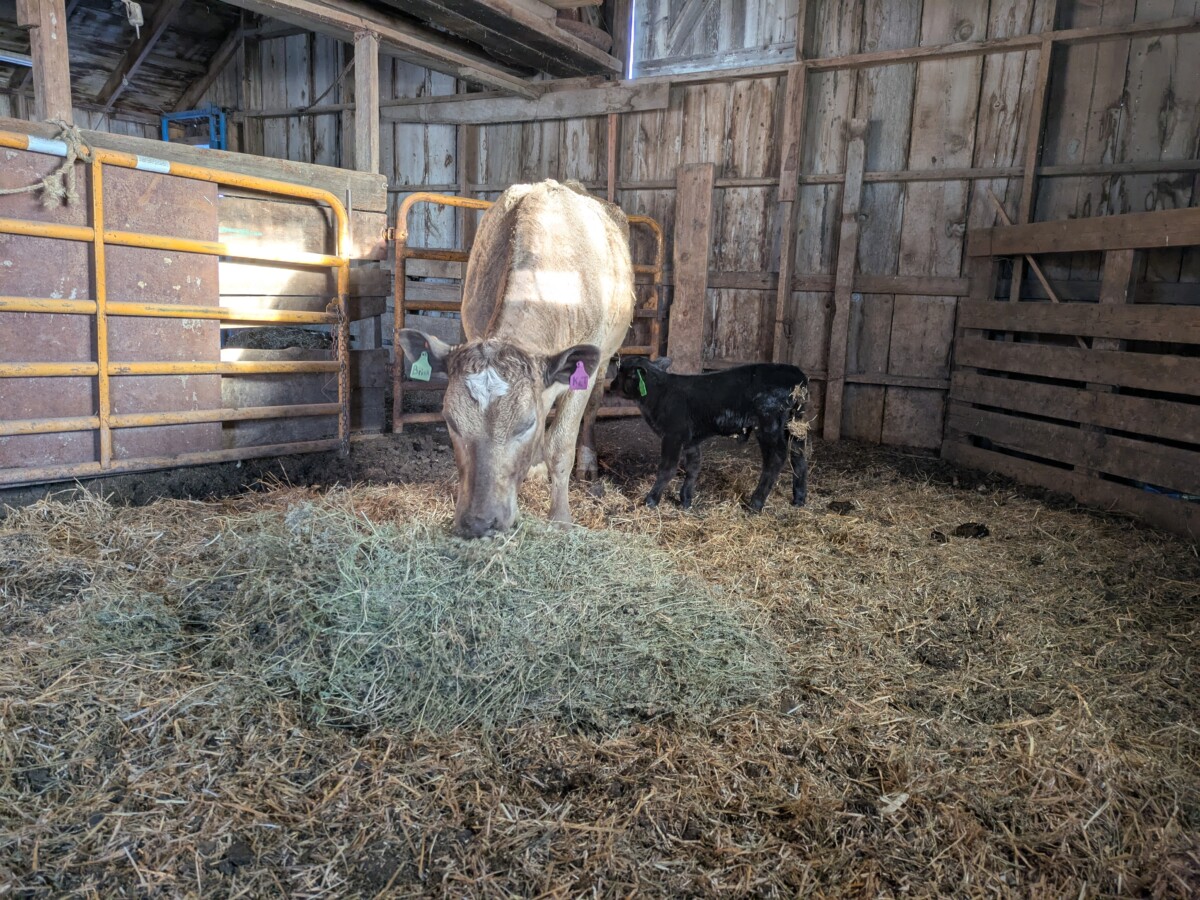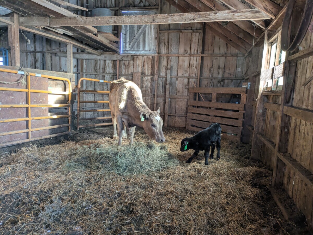 The cows huddled against the fence in the corn stalks. No good shelter out there. Without snow and not terribly cold, we thought they would be alright. Come morning we would lead them up to the corrals with the tractor and bales of hay. With feed it would be simple to lead them to a more protected place, out of this infernal wind. The cows did not think they were alright. They also did not think it was worth following the feed like they usually do.