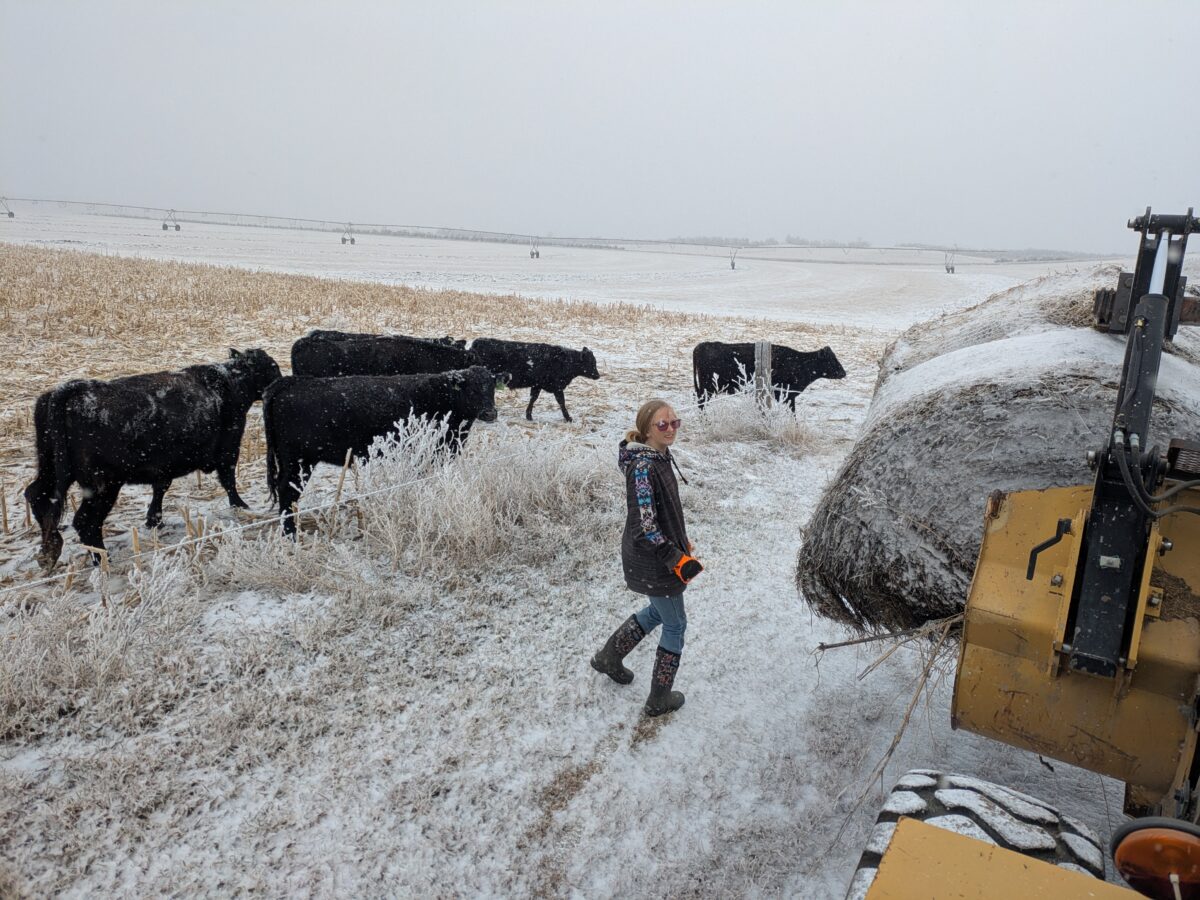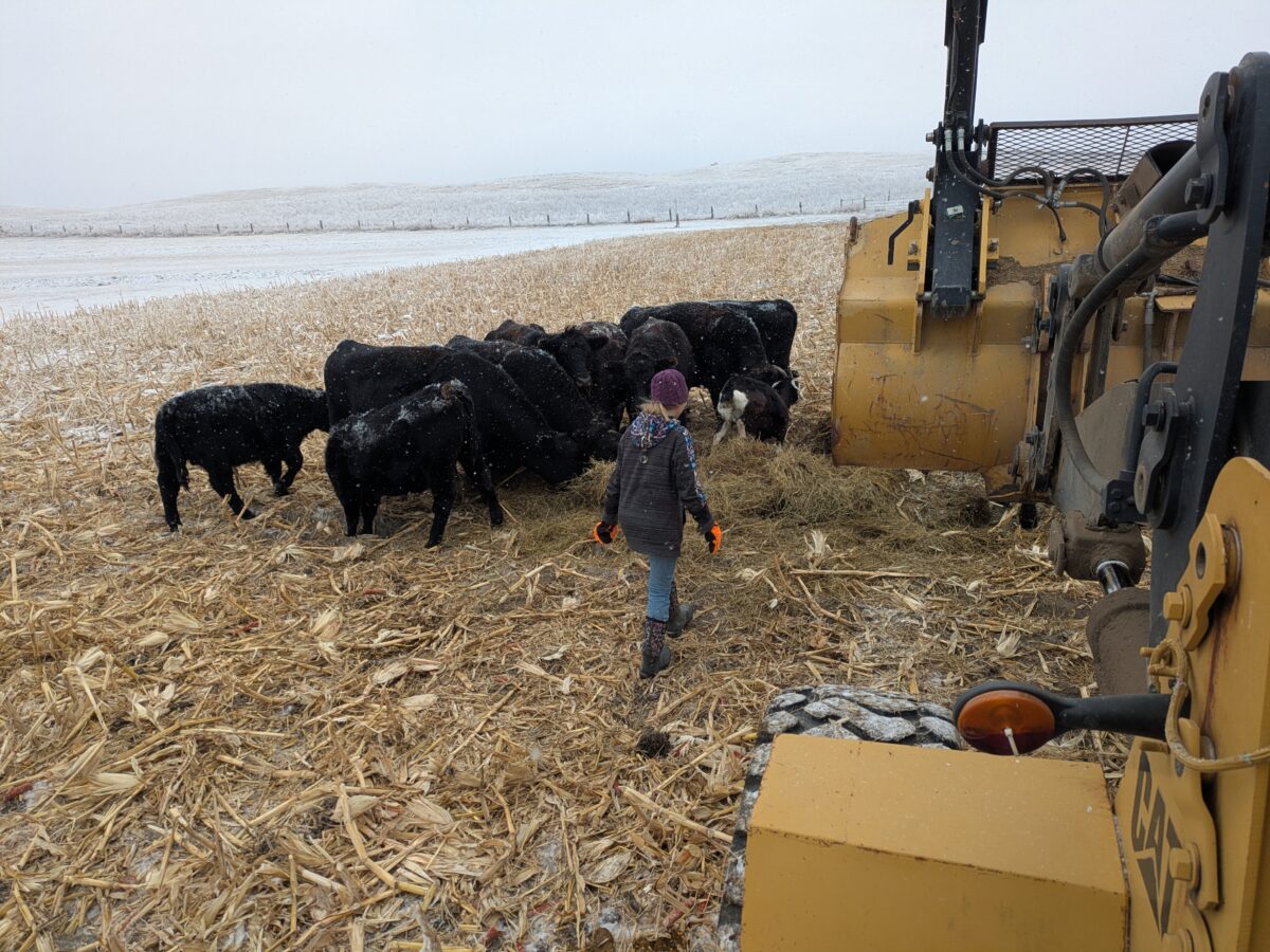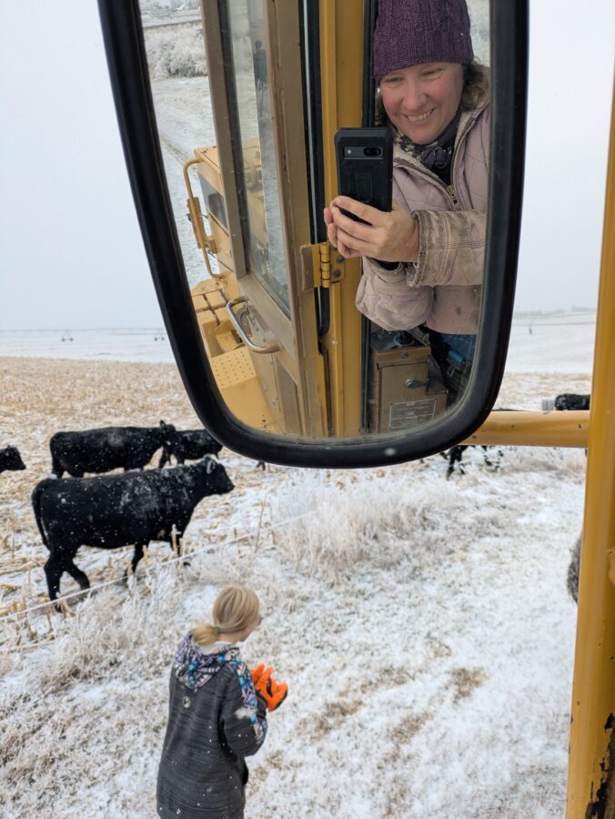 We rushed through getting the cows fed. She told me the whole time how awful I was. She wouldn’t drive the payloader even if it would make the feeding go faster.
